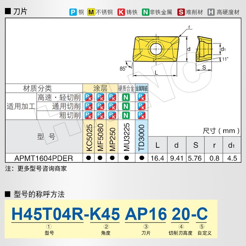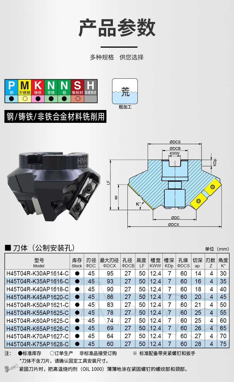 海纳H45T04R-K35AP1616-C 35度焊接坡口倒角斜面加工铣刀盘